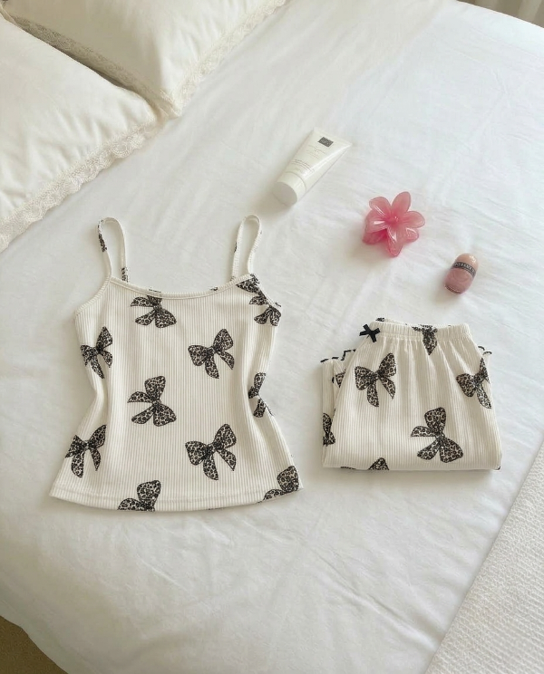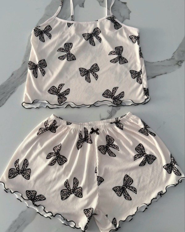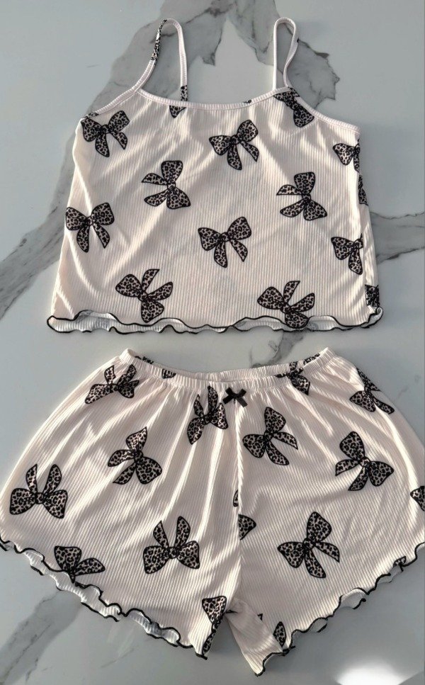 Pijama morley rulete - Natural con moños